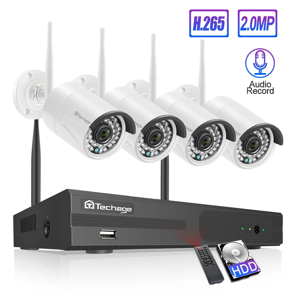 Techage 4CH 1080P Wireless Security Camera NVR System 2MP HD Wifi Outdoor Indoor CCTV Camera Audio