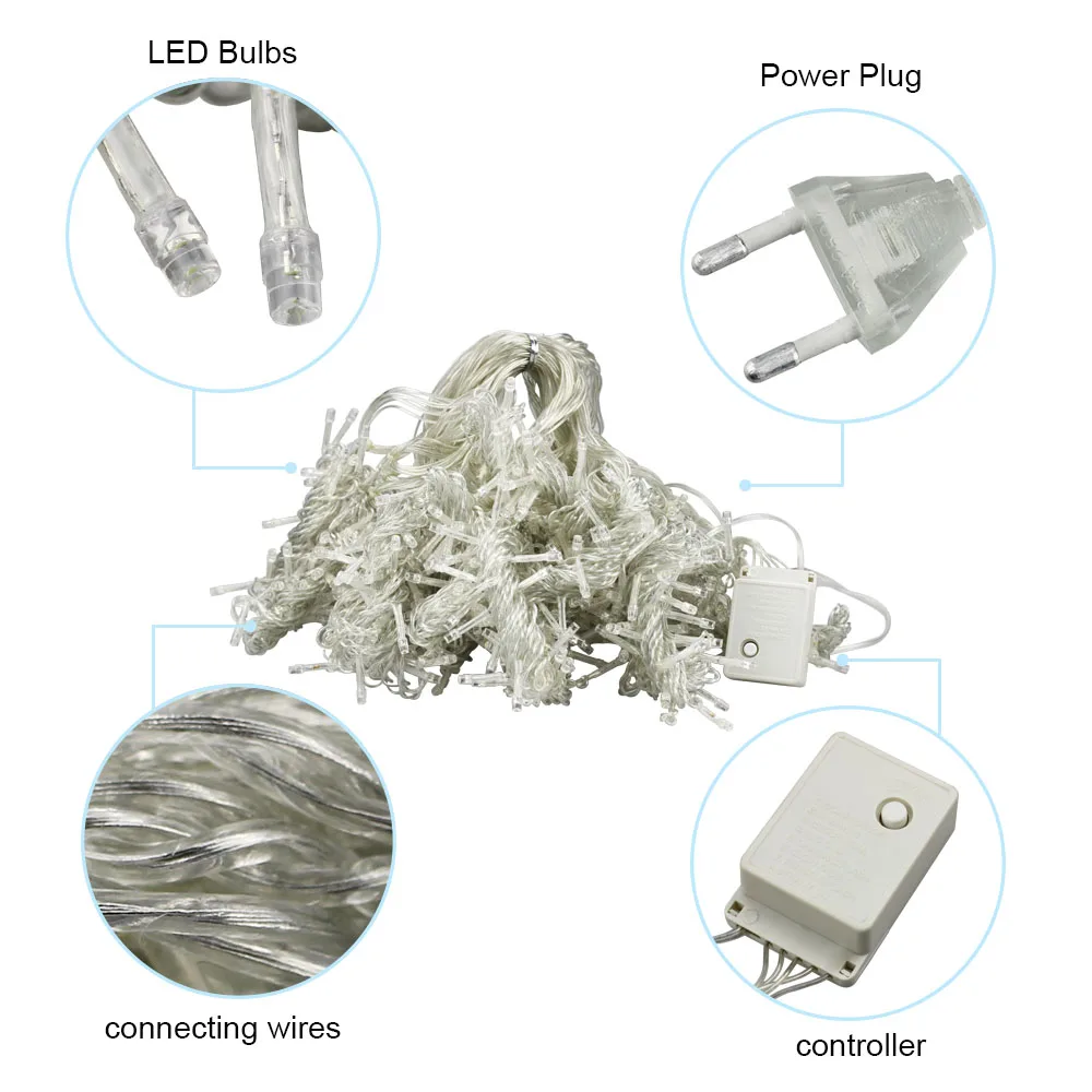 RAYWAY 600LEDs Fairy String Icicle led Curtain Light 220v 110V 6M*3M Bulb Outdoor Home Xmas Christm